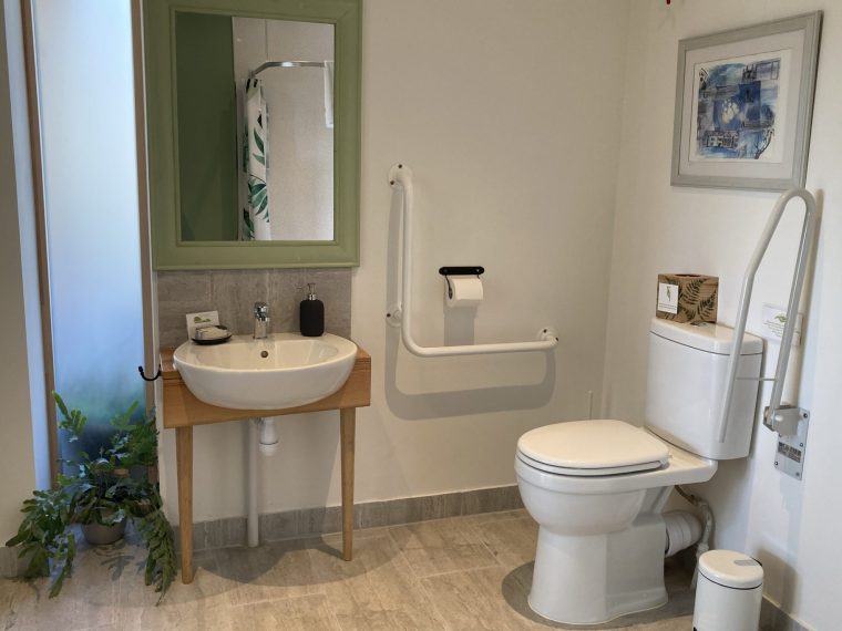This suite has also been also been designed to accommodate most guests in a wheelchair or with mobility needs. The triple glazed, sliding door is slightly larger with a flat threshold, and the bathroom is large with a wheel in/walk in shower and lowered hand basin and shelf. Extra bathing help such as a shower stool, raised toilet seat and suction grab handles can be supplied on request. However, please note that the kitchen has not been adapted in any way.